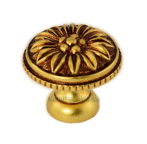 Ручка кнопка 130.35 OLD GOLD, материал Латунь, отделка Французское золото, d=35 мм